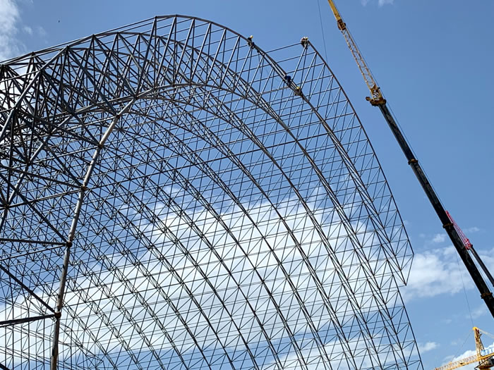 (2)网架加工前应对现场尺寸进行复测,确认无误后方可进行加工、安装;网架制作、运输、安装应遵守《空间网格结构技术规程》JGJ7-2010、《钢网架芜湖螺栓球节点》JG/T 10-2009、《钢网架芜湖螺栓球节点用高强度螺栓》 GB/T 16939-2016、《芜湖钢结构芜湖工程芜湖施工规范》 GB50755-2012、《芜湖钢结构芜湖工程施工质量验收标准》 GB50205-2020。